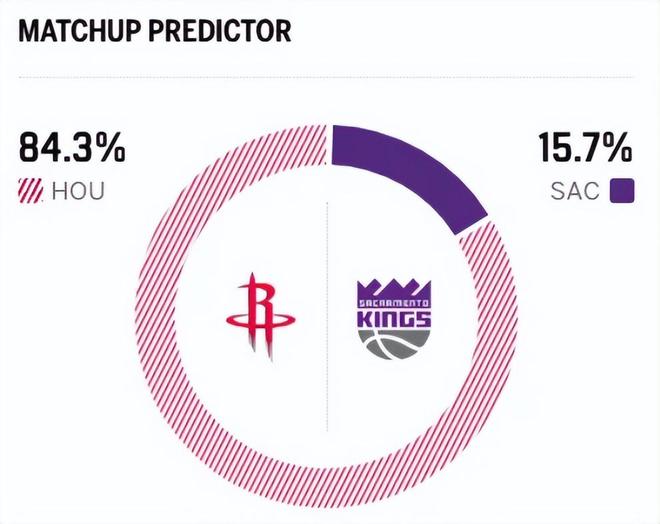 赛前,美媒ESPN对本场比赛进行了胜率预测,国王队胜率仅有15.7%,火箭队胜率高达84.3%,差距悬殊。