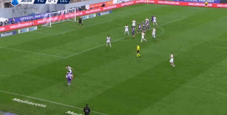 第23分钟,莫伦特传中,贝里沙后点端射破门,莱切1-0佛罗伦萨