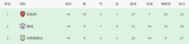 拿下胜利之后,维拉积分达到27分,升至积分榜第三位,距离领头羊阿森纳6分、距离曼城只差1分,上升势头非常猛。